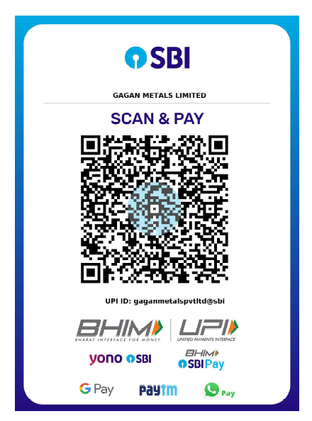 UPI ID : gaganmetalspvtltd@sbi